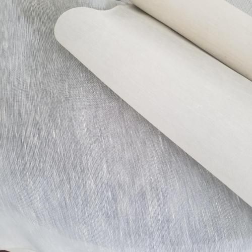 ハンジ(韓紙)入りシルクは経糸に絹糸を、緯糸にハンジ(韓紙)を加工した糸を使った交織の布です。程よい張り感があります。緯糸のハンジが織りなす不規則な模様は、ほかの絹の生地ではなかなか出会えないもの。独特のテクスチャーをぜひお試しください。